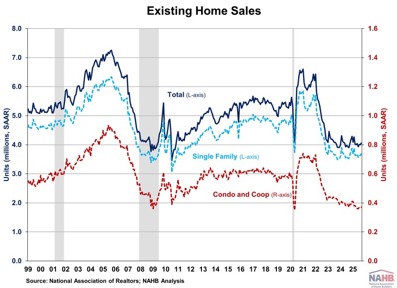 Fan-Yu Kuo2025-10-23T11:22:33-05:00Existing home sales rose to a seven-month high in September as mortgage rates eased and inventory improved, according to the National Association of Realtors (NAR). Resale inventory matched to the highest level since May 2020, though it remained below pre-pandemic levels. Mortgage rates hovered between 6.5% and 7% earlier this year due to ongoing economic and tariff uncertainty. However, rates recently fell below 6.5% for the first time this year as the Fed resumed rate cuts at its September meeting. Last week, the average mortgage rate decreased to a nearly one-year low of 6.27%. With additional rate cuts expected in coming months, lower mortgage rates and improved inventory should bring more buyers and sellers into the market. Total existing home sales, including single-family homes, townhomes, condominiums, and co-ops, rose 1.5% to a seasonally adjusted annual rate of 4.06 million in September. On a year-over-year basis, sales were 4.1% higher than a year ago. The existing home inventory level was 1.55 million units in September, up 1.3% from August and up 14.0% from a year ago. At the current sales rate, September unsold inventory sits at a 4.6-months’ supply, unchanged from July and August but up from 4.2-months in September 2024. Inventory between 4.5 to 6 month’s supply is generally considered a balanced market. Homes stayed on the market for a median of 33 days in September, up from 31 days last month and 28 days in September 2024. The first-time buyer share was 30% in September, up from 28% in August and 26% from a year ago. The September all-cash sales share was 30% of transactions, up from 28% in August but unchanged from a year ago. All-cash buyers are less affected by changes in interest rates. The September median sales price of all existing homes was $415,200, up 2.1% from last year. This marks the 27th consecutive month of year-over-year increases. The median condominium/co-op price in September was down 0.6% from a year ago at $360,300. Recent gains for home inventory will put downward pressure on resale home prices in most markets in 2025. Geographically, three of the four regions saw an increase in existing home sales in September, with an increase of 5.5% in the West, 2.1% in the Northeast, and 1.6% in the South. Meanwhile, sales in the Midwest fell 2.1%. On a year-over-year basis, sales were up in the South (6.9%), Northeast (4.3%) and the Midwest (2.2%), while sales were unchanged in the West. The Pending Home Sales Index (PHSI) is a forward-looking indicator based on signed contracts. The PHSI rose from 71.8 to 74.7 in August, suggesting lower mortgage rates are bringing more buyers back into the market. On a year-over-year basis, pending sales were 3.8% higher than a year ago, according to the National Association of Realtors’ data. Discover more from Eye On Housing Subscribe to get the latest posts sent to your email.