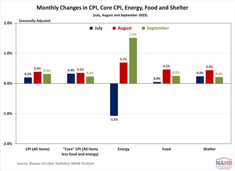 Inflation increased in September to the fastest pace since the start of the year, showing tariff pressure on prices continues to materialize gradually, according to the Bureau of Labor Statistics (BLS) latest report. This month’s data collection was completed prior to the government shutdown but was published this week in order to provide next year’s Social Security cost-of-living adjustments. Meanwhile, shelter inflation remained unchanged from last month and continued its downward trend, though it remains higher than pre-pandemic levels.