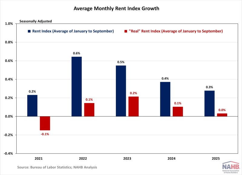 In September, the Real Rent Index remained unchanged. Over the first nine months of 2025, the average monthly growth rate remained flat at 0.0%, slower than the average of 0.1% in 2024.