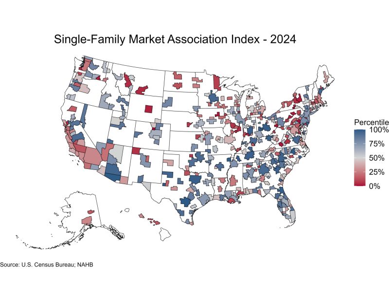 The National Association of Home Builders developed the Single-Family Market Association Index (MAI) to measure how closely single-family building permits in metro areas follow national patterns. By comparing local and national trends, the MAI helps industry leaders and forecasters better understand and predict housing market activity.